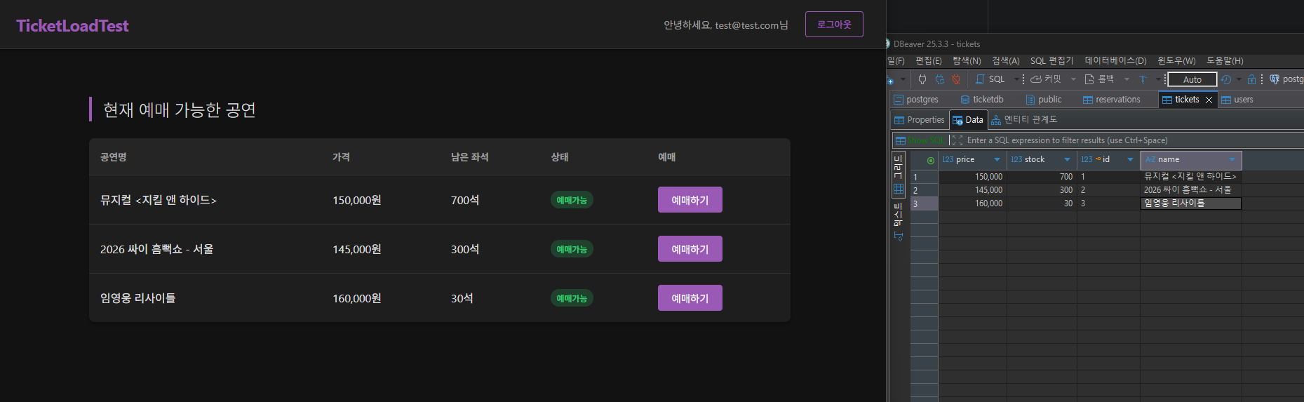 - 실제 재고: 268 (268건의 예매가 재고 감소에 반영되지 않음)